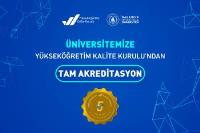 Üniversitemiz, Yükseköğretim Kalite Kurulu (YÖKAK) tarafından yürütülen Kurumsal Akreditasyon Programı (KAP) kapsamında gerçekleştirilen kapsamlı ve çok boyutlu değerlendirmeler sonucunda “5 yıl süreyle Tam Akreditasyon” almaya hak kazanmıştır.